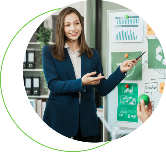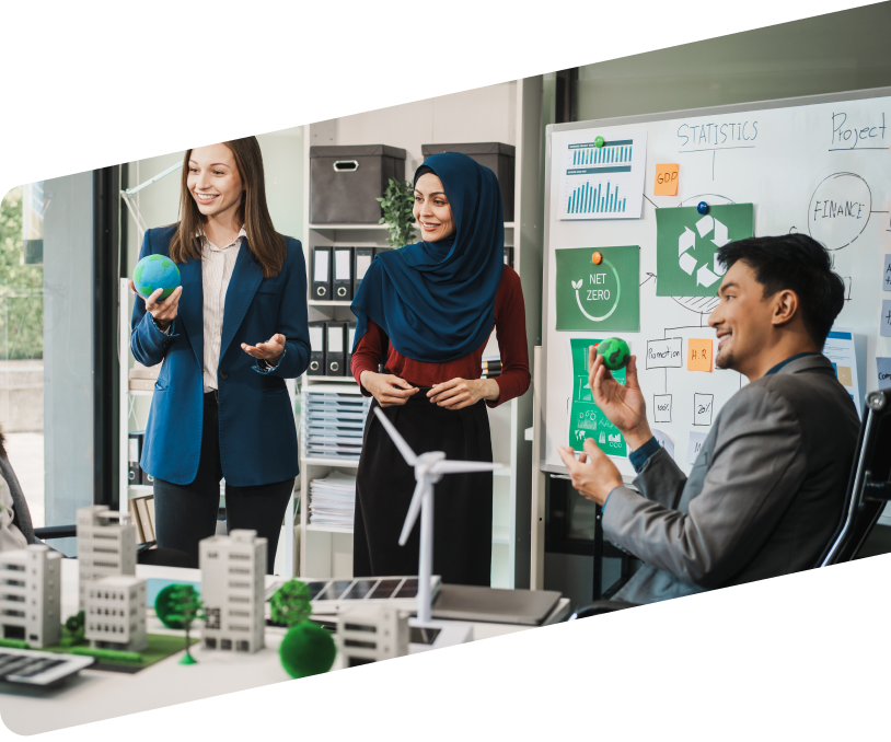 Te ayudamos a implementar acciones efectivas como eficiencia energética, energías renovables, transporte sostenible y gestión de residuos.